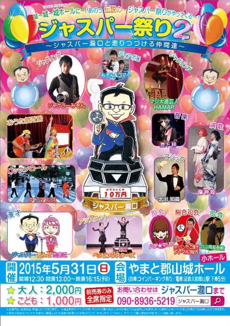 自分の顔として楽しんでお使いいただけるキャラクター作成、このように奈良のマジシャン、ジャスパー瀧口さんはイベントポスターにご利用いただいています。